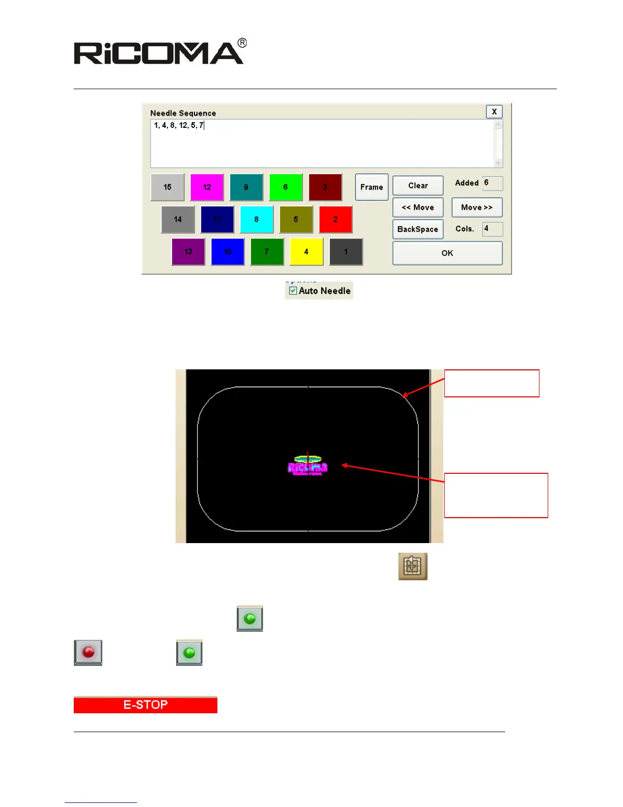 to start embroidery, during which, you can click on