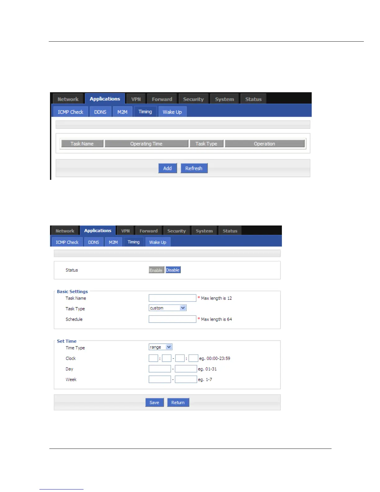 Step 2 Click “Applications > M2M” to open M2M configuration tab.