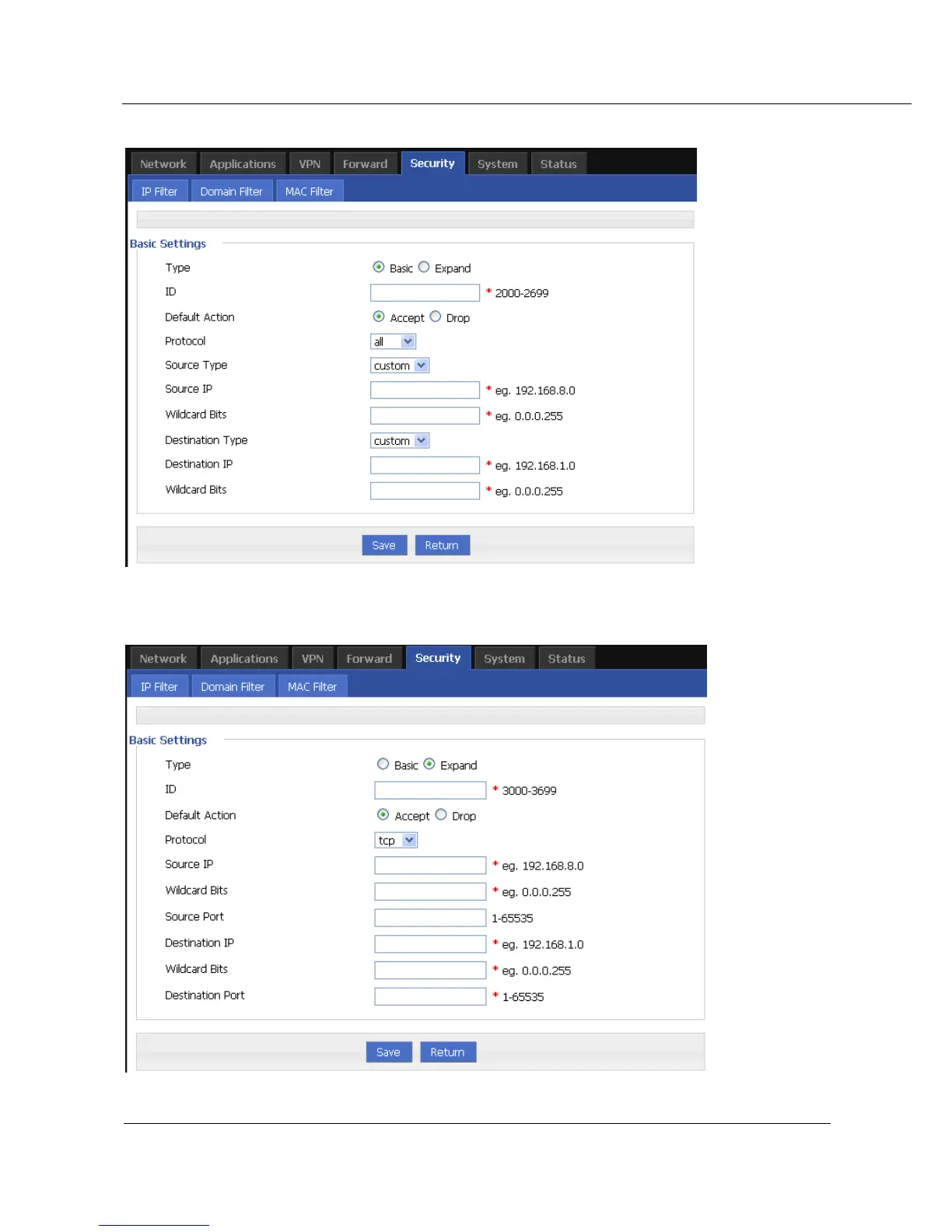 Figure 5-24 IP filter Basic type