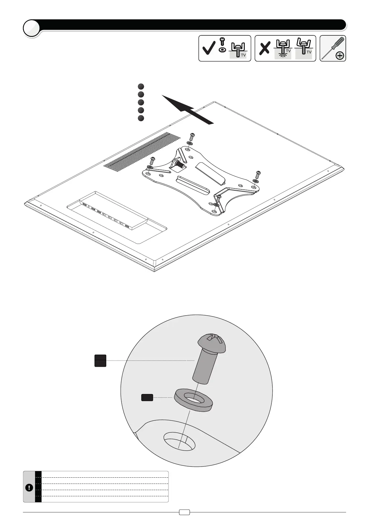 Benutzen Sie die für Ihren Bildschirm passenden Schrauben und Abstandshalter.