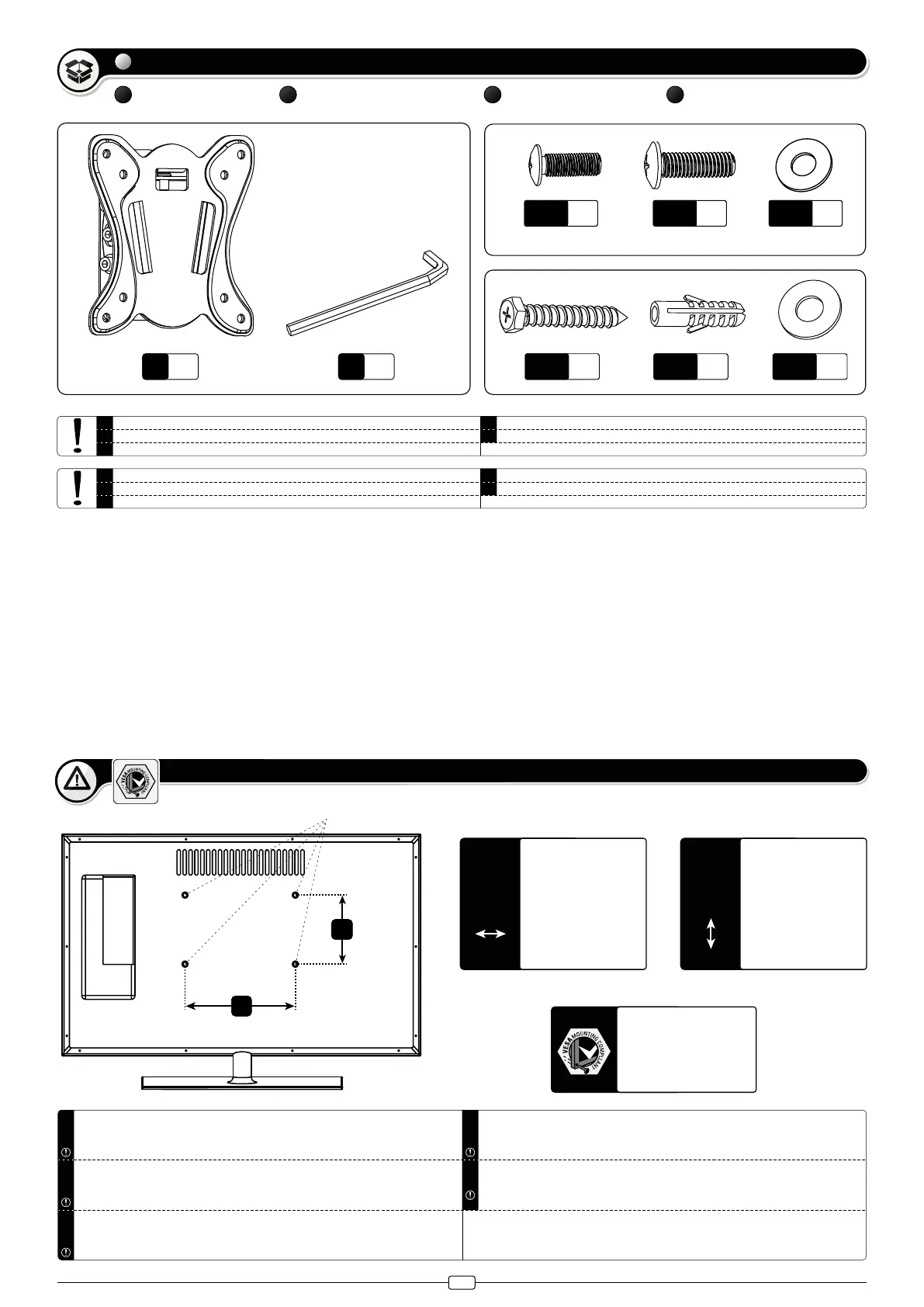 Bitte überprüfen Sie VOR der Montage den VESA Lochabstand zwischen den Befestigungs-