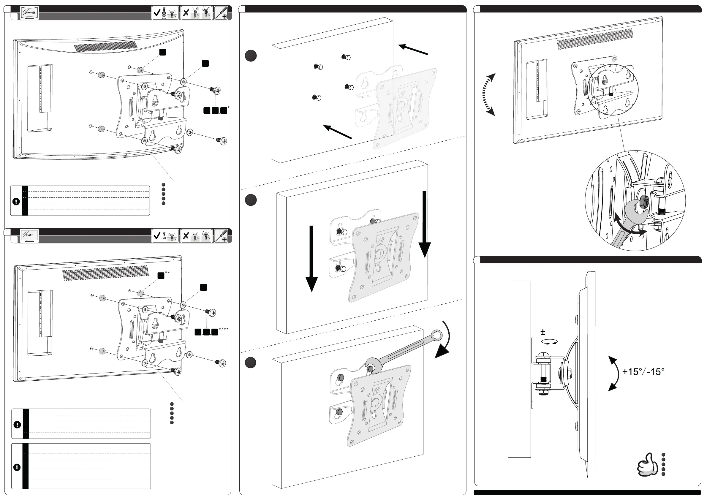 If the screws "E, F, G" are too long, use the plastic spacers "C". (like in Step 3 A)
