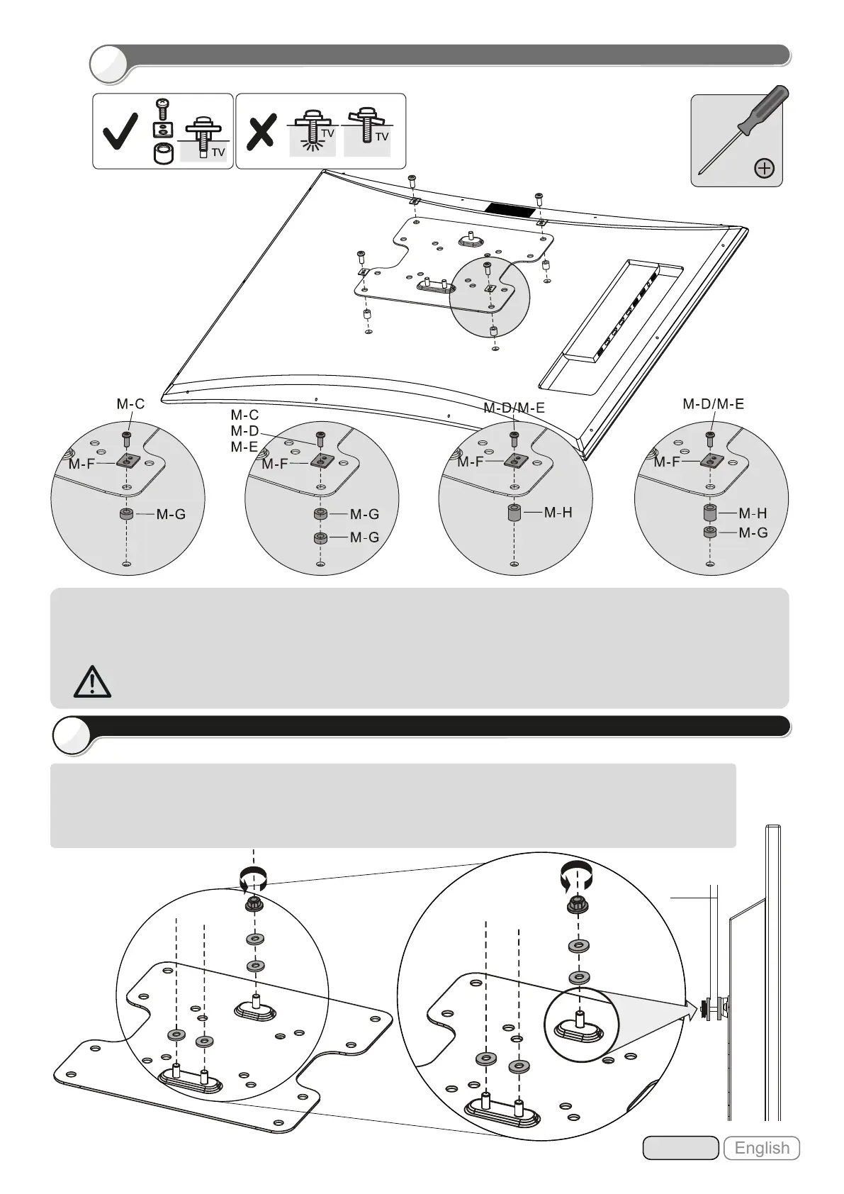 Beachten: Wählen Sie die zu Ihrem TV passenden Schrauben, Unterlegscheiben und falls erforderlich die