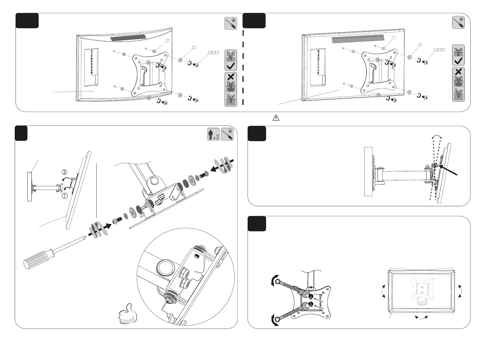 Die Frontplate dieser Wandhalterung ist links / rechts drehbar. Falls die Wandmontage der Halterung nicht zu 100% Waagerecht