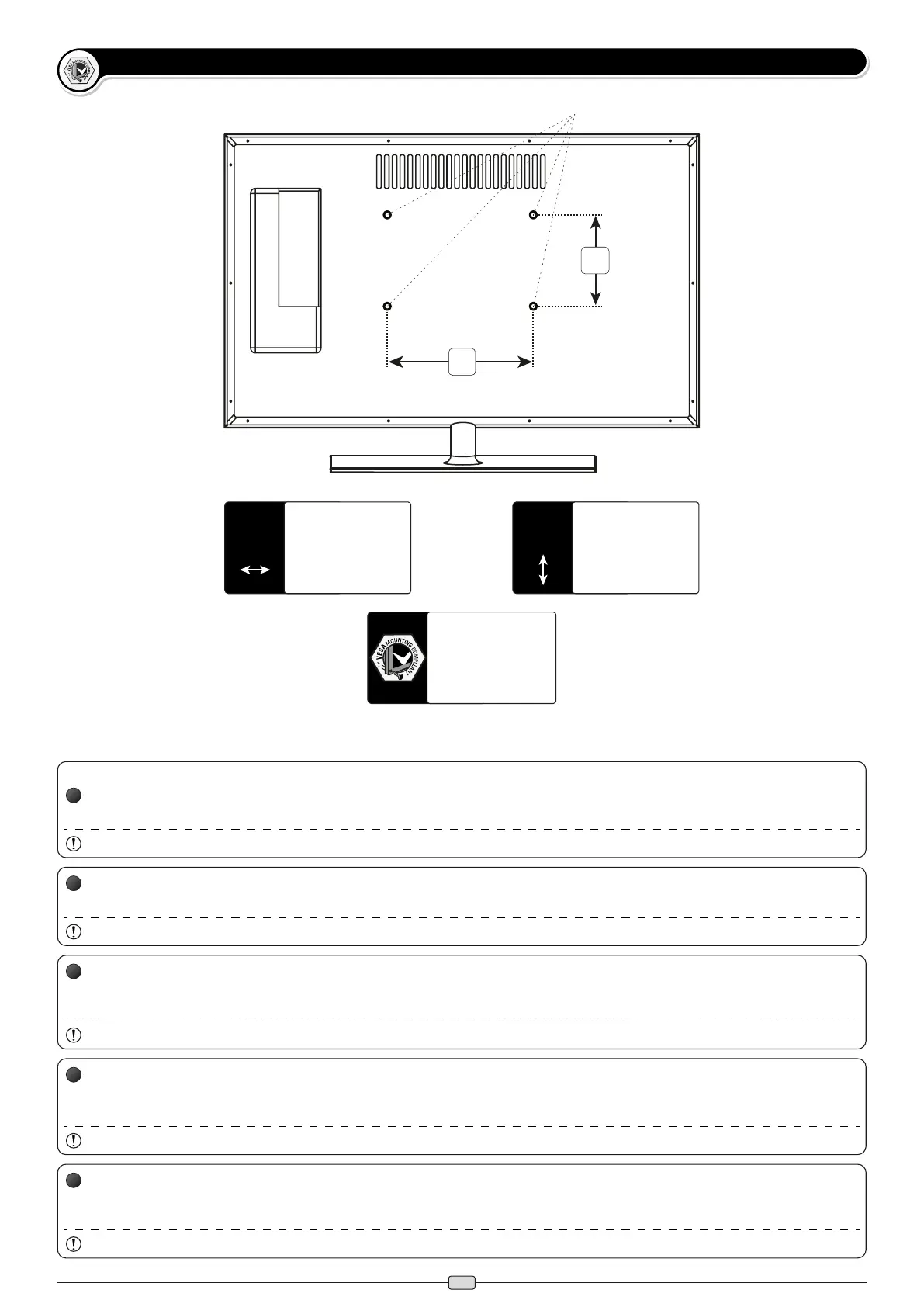 Bitte überprüfen Sie VOR der Montage den VESA Lochabstand zwischen den Befestigungslöchern an Ihrem