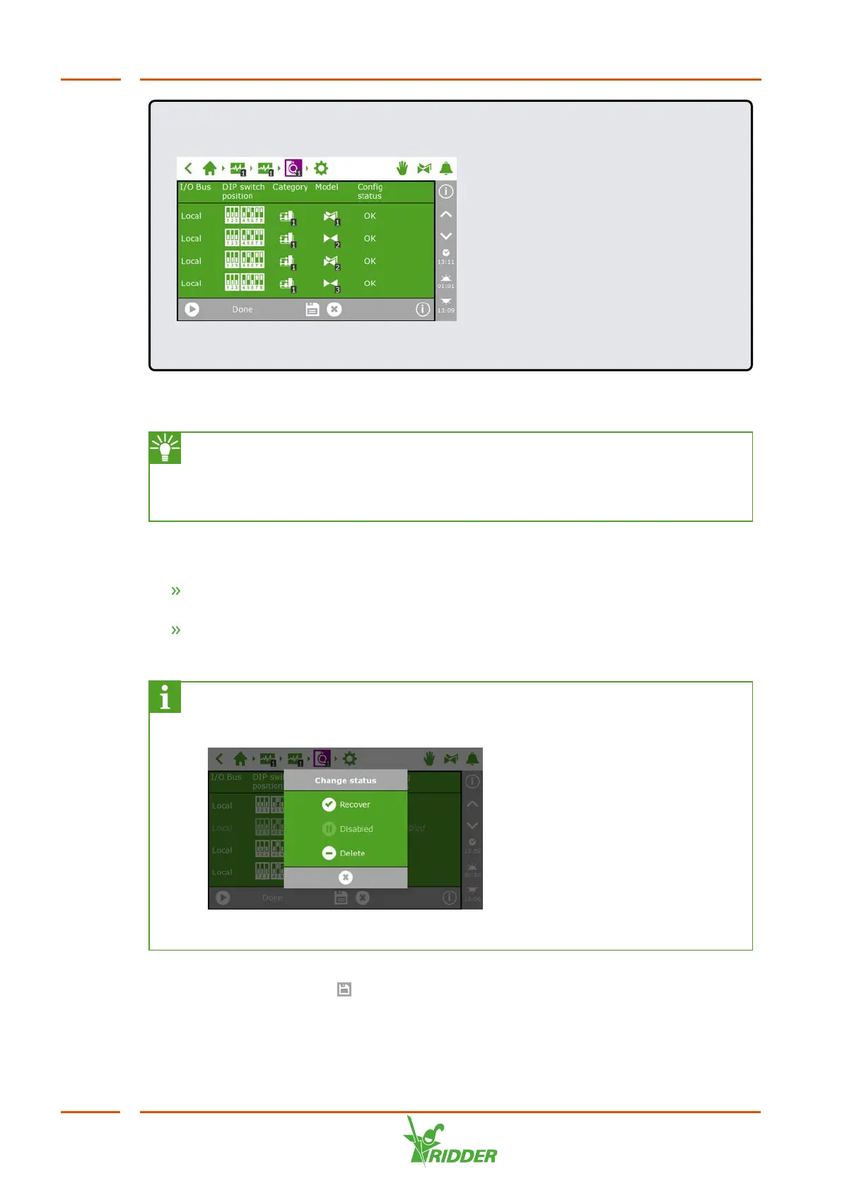 correct, tap the Save icon ā '. The system updates the configuration automatically
