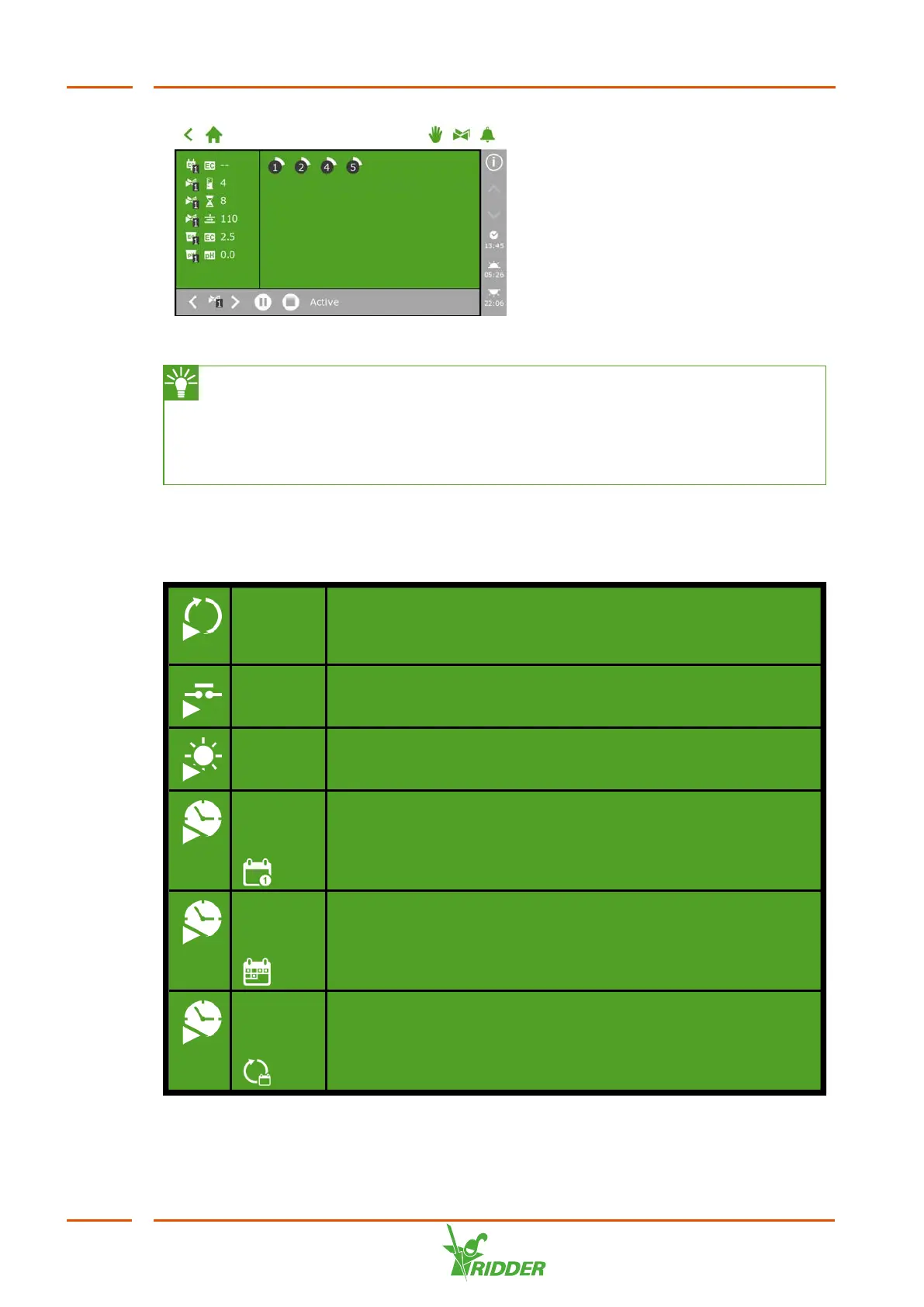 can change the EC, pH and volume settings of the valve group. Do not forget