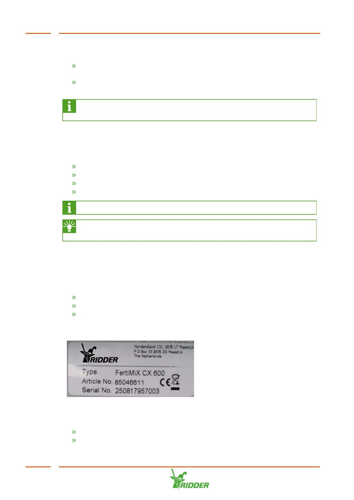 The HortiJet Pro should include the following inspection certificates and stickers.