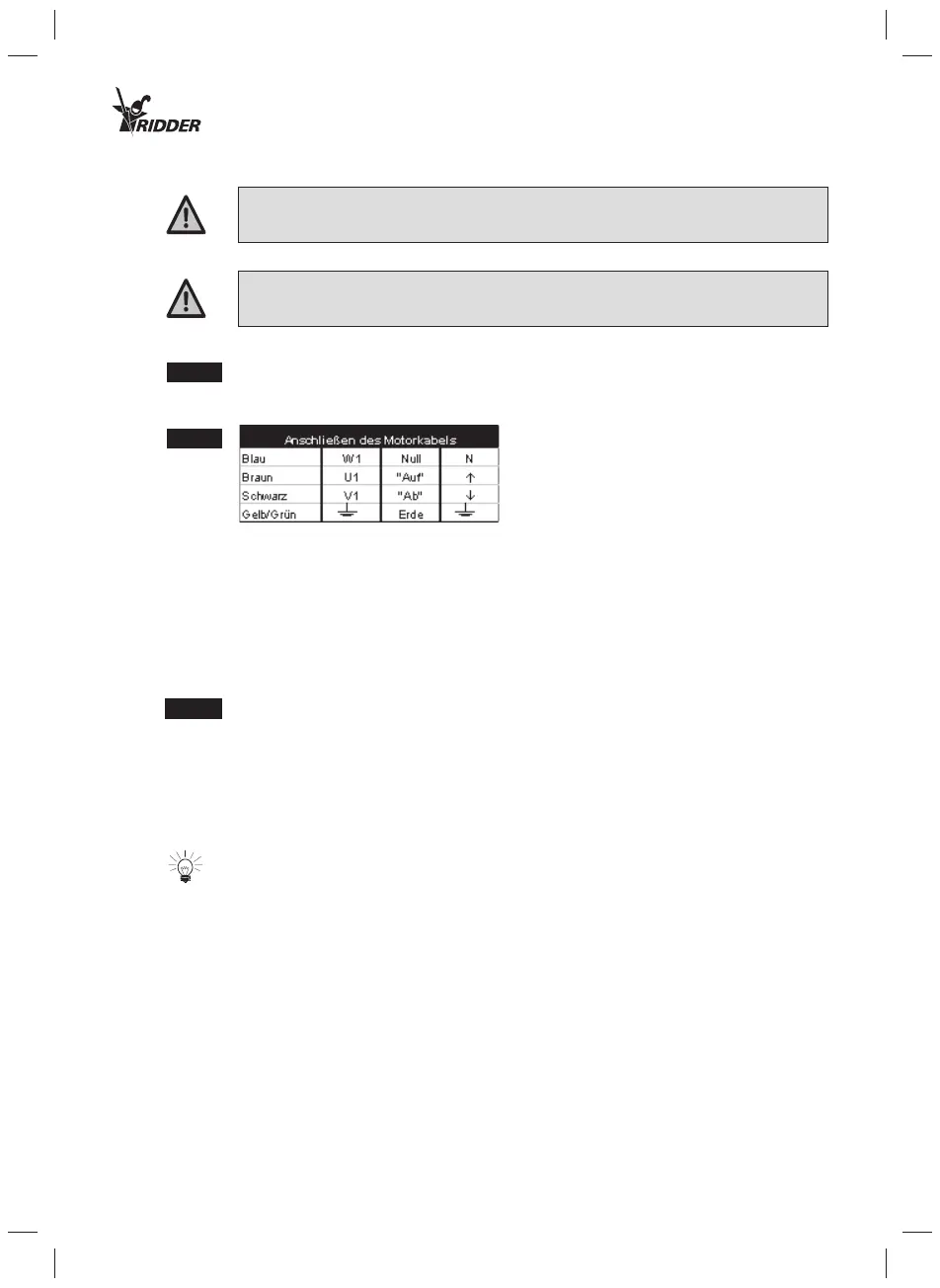ROHRMOTOREN DÜRFEN NIEMALS PARALLEL ANGESCHLOSSEN WERDEN!