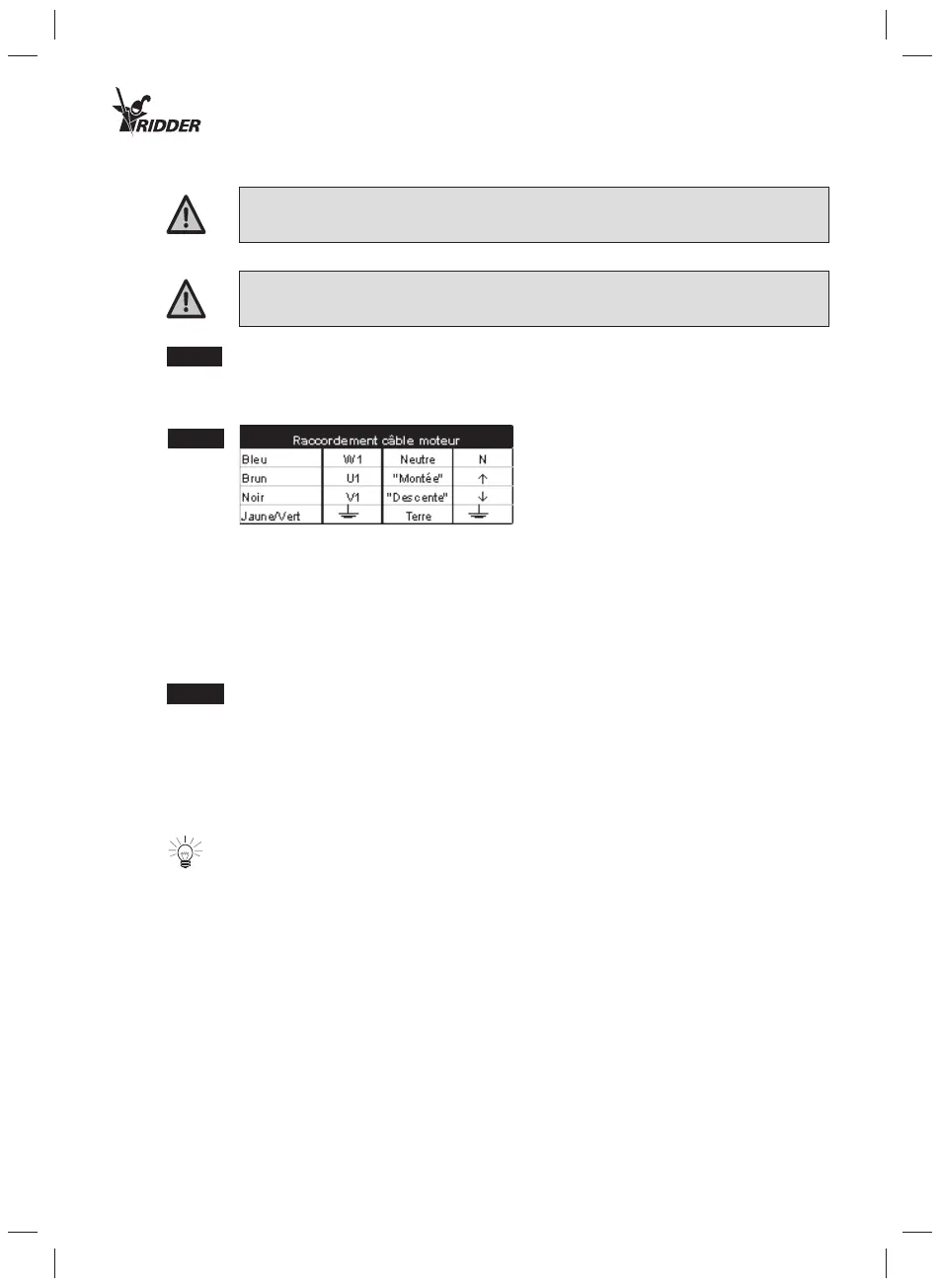 Le câblage du moteur se fait à l’aide d’un câble à 4 conducteurs, provenant du 2-pôle moteur (à