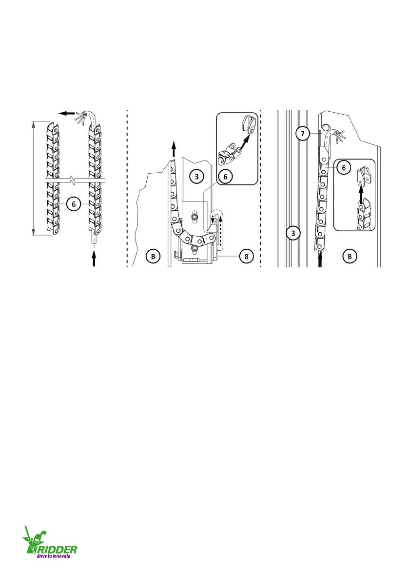 the cable carrier (6). Aach this end (6) to the end connector (MCP) at the cable-carrier bracket