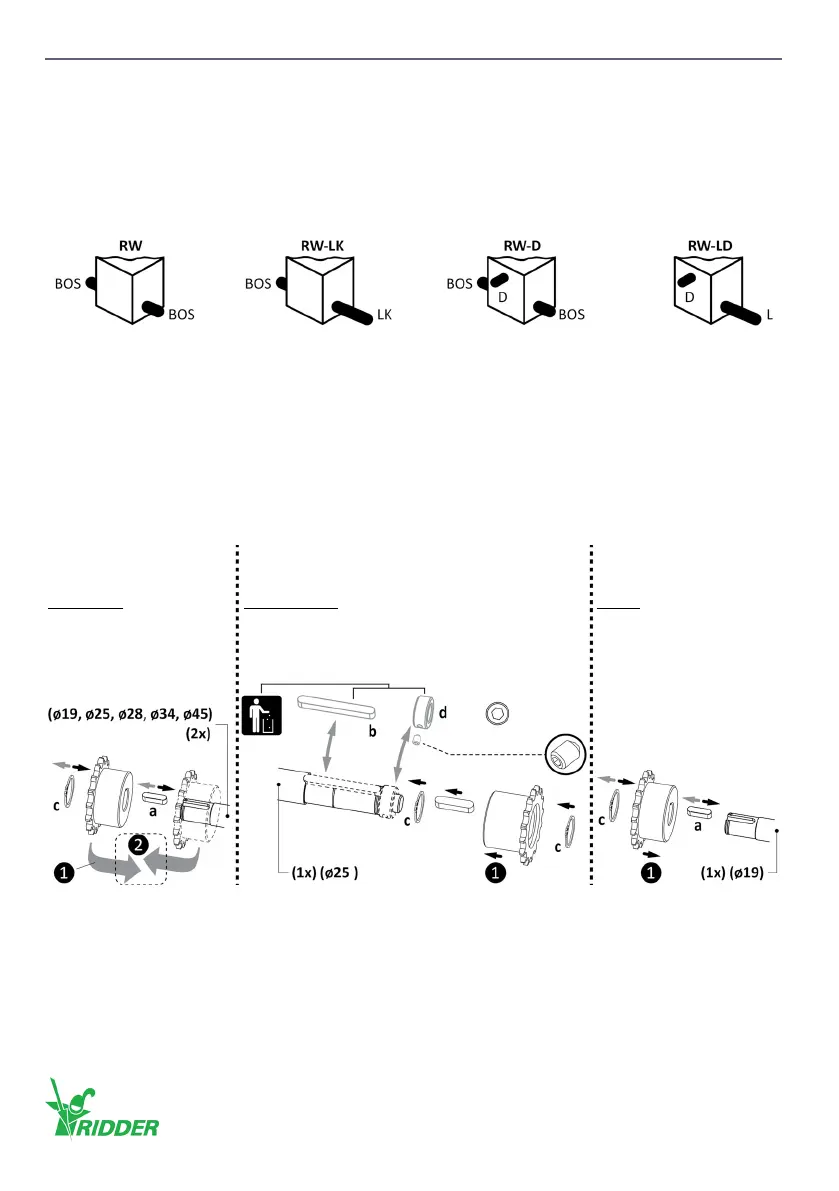 • Usually Ridder installs sprockets onto the two basic output shafts (BOS) of most models (general