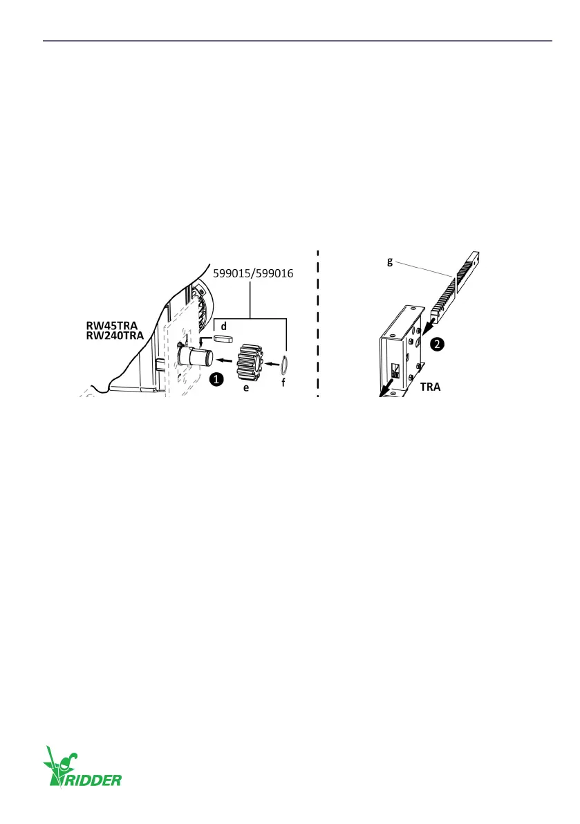 ❹ Install the TRA rack drive-unit onto the gearbox (and mounng plate or alternave [h]) with the