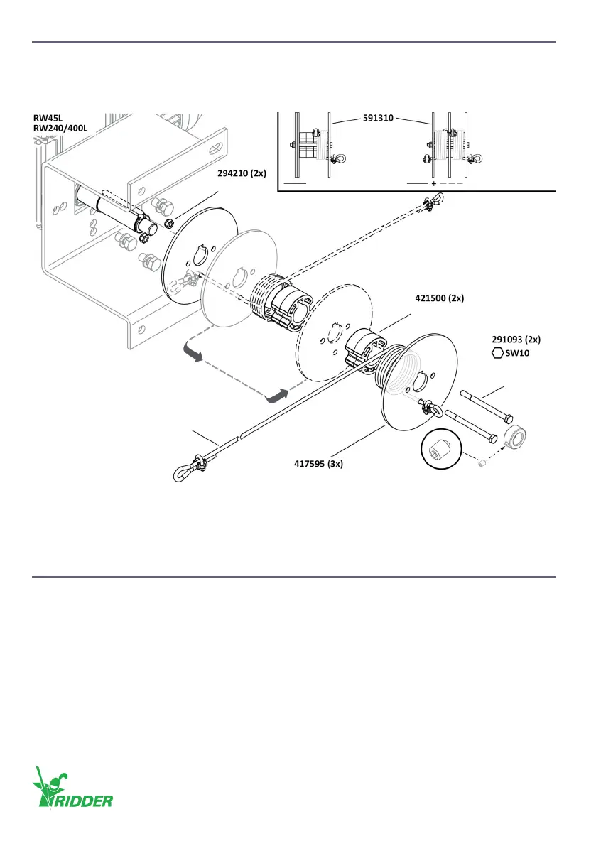 Install the drum and cable (one or two) onto the RW45L or RW240/400L drive-unit. Refer to the