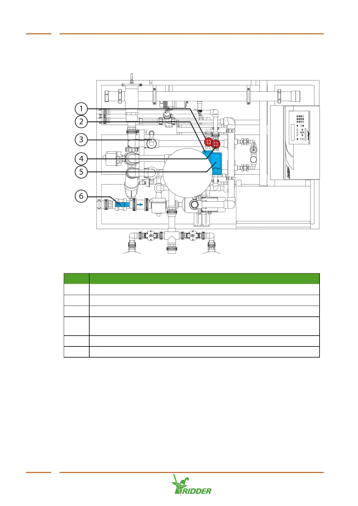 4. Open manual valves 1 (drain water return) and 6 (suction pipe) in the unit's inlet