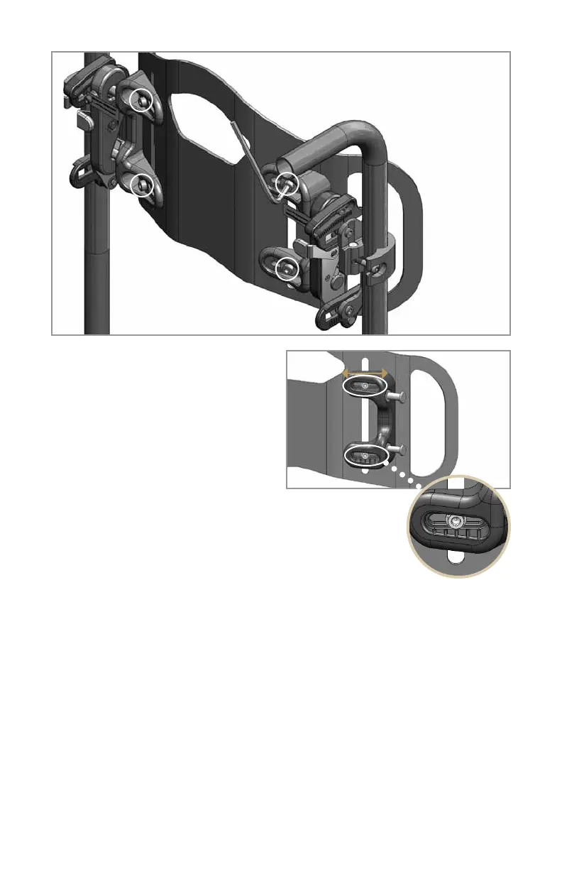 latch mechanism. Be sure both latch buttons pop back, and tug the back shell