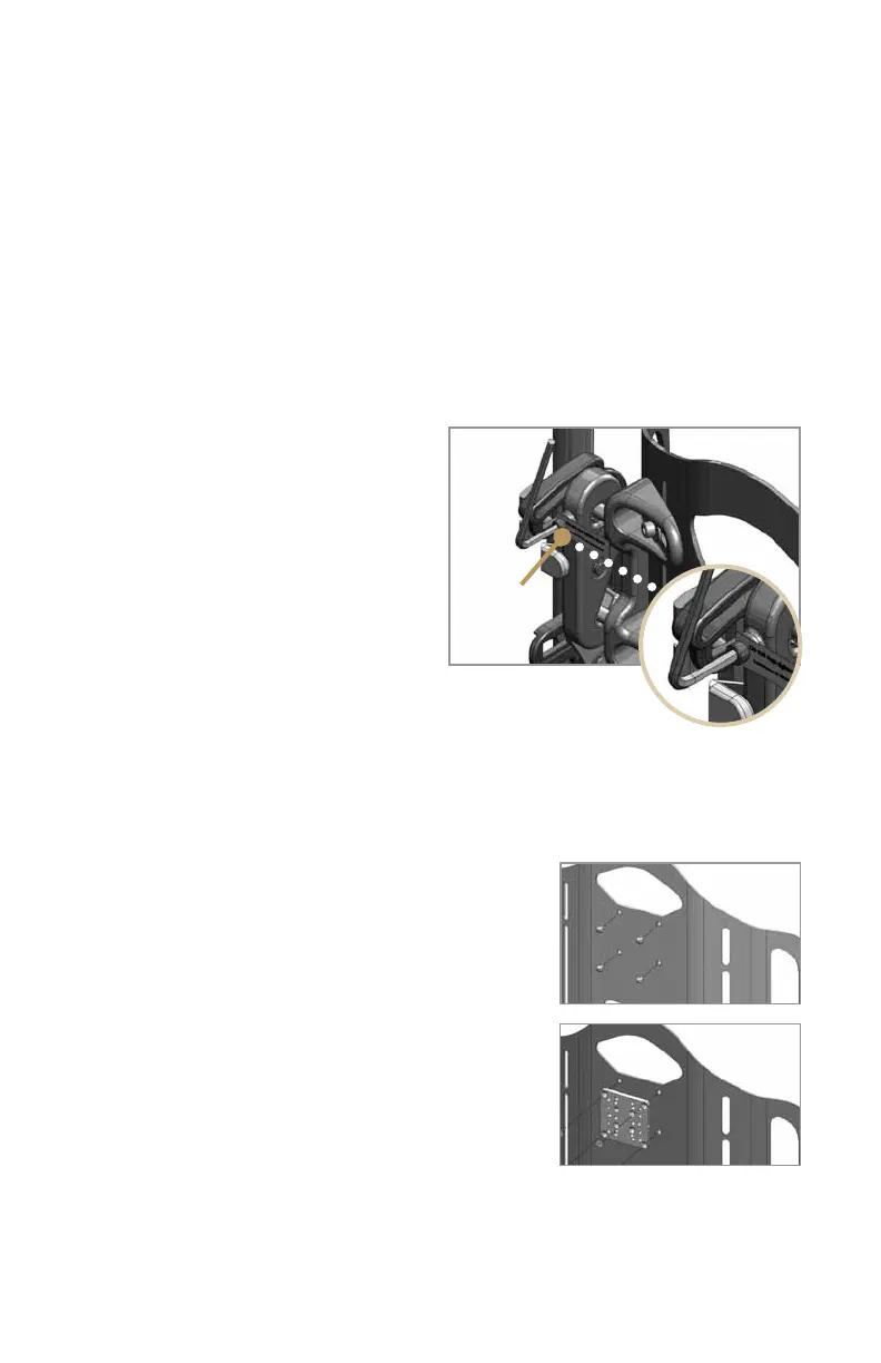 the vertical slot in the back shell and the horizontal slot in the trunk support, and