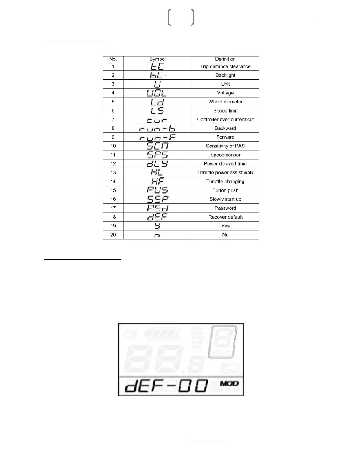 “dEF” represents recover default settings. The default value is N. To access recover default settings, hold