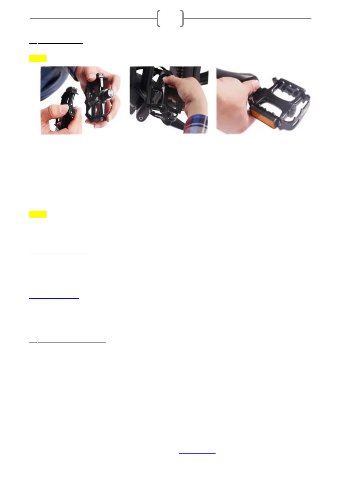 • Use a wrench no wider than the flats on pedals to finish tightening the pedals in place.