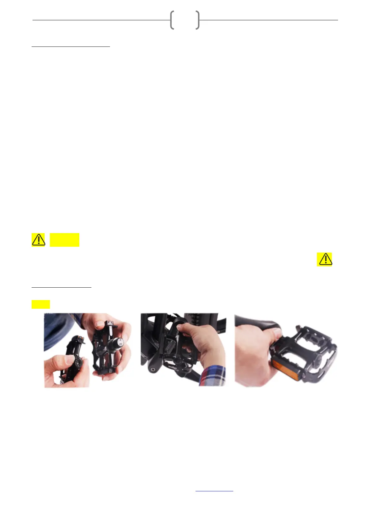 • Use a 15mm wrench on pedals to finish tightening the pedals in place.