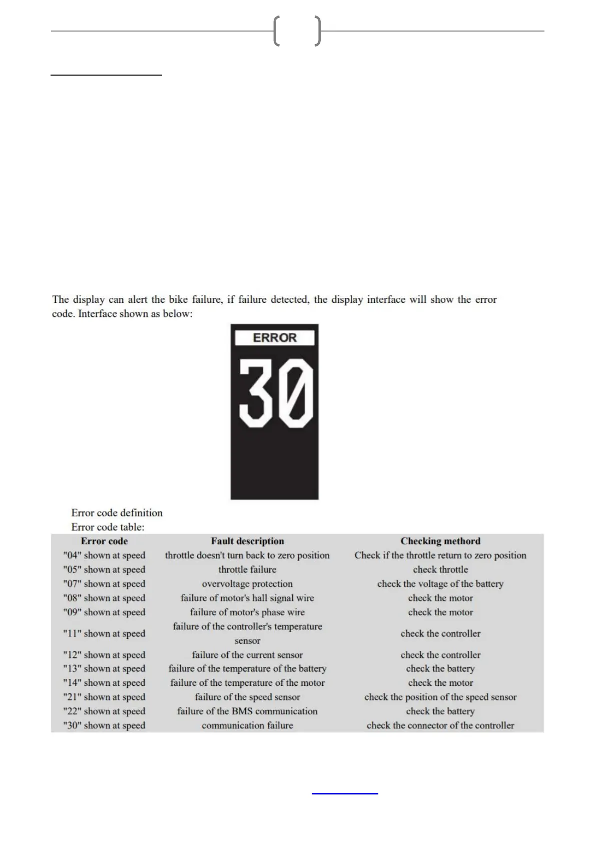 In the event of a problem with the electrical components of your bike, the display will show an error code.