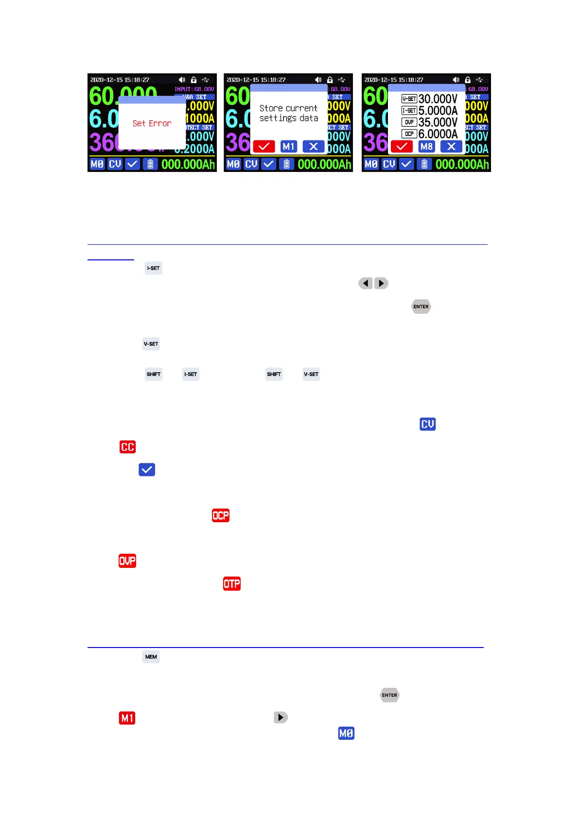 Press button to set the output current value, you can use encoder