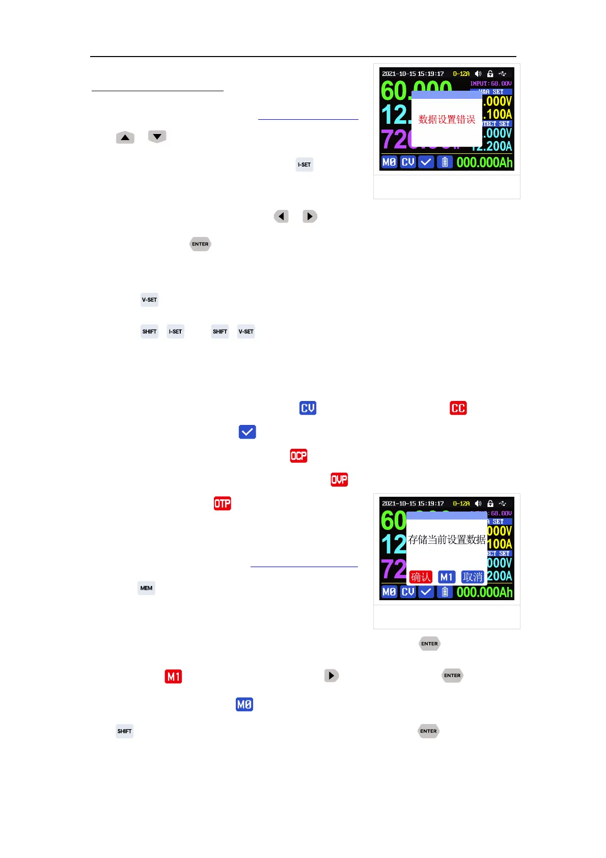值(OCP)后,电源切自动关闭输出,并 提示,当输出电压实际值大于输出过压
