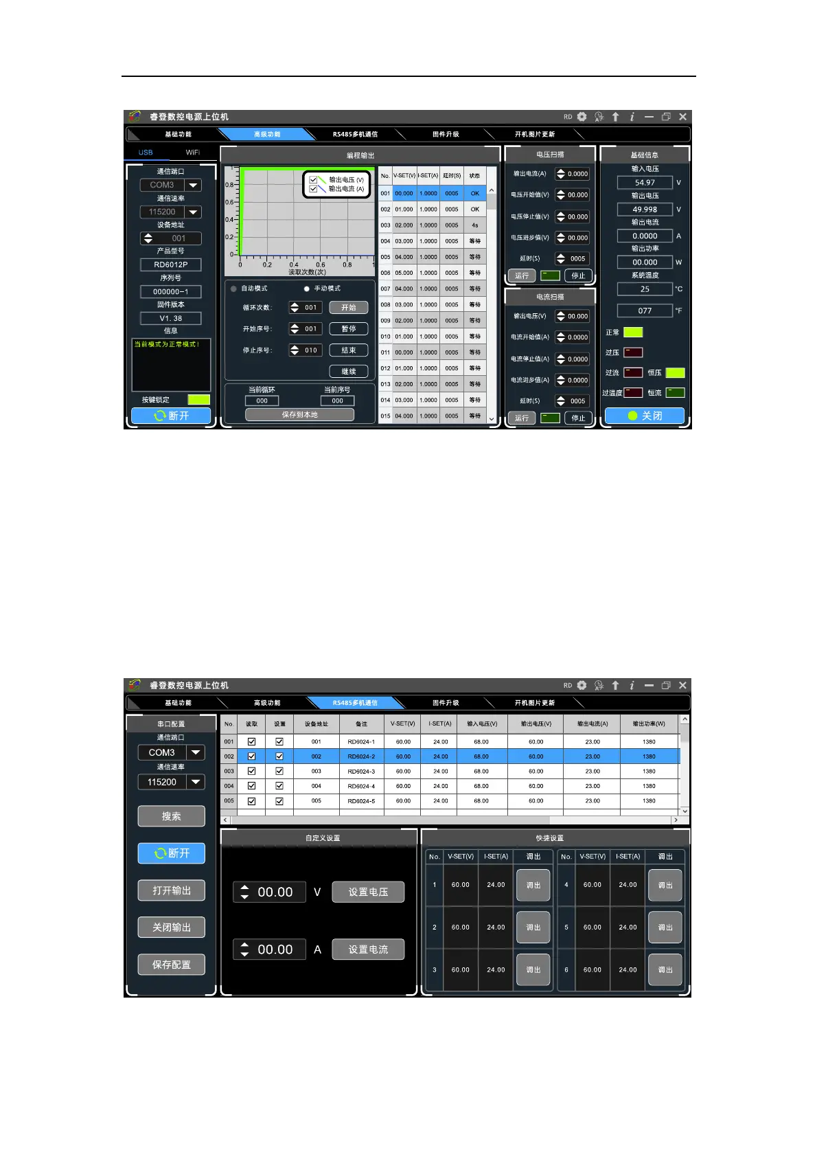 在表格中可以任意更改某个产品的输出电压电流,在自定义设置中可以批量
