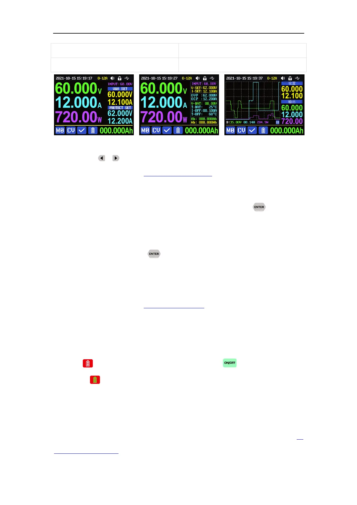 充电指示 提示电池接好,设定好电压电流后然后按 键开始充电,同时电