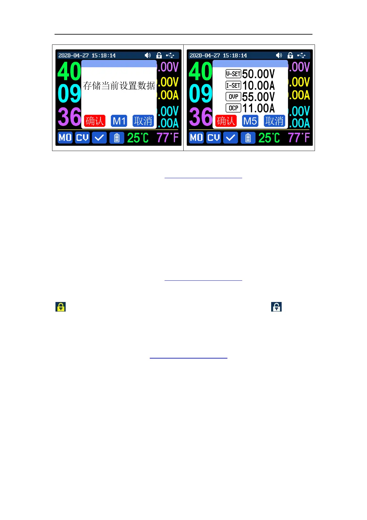 保护值、过流保护值存储为快捷调用(如上图所示),按动 ENTER 键确认,按动编