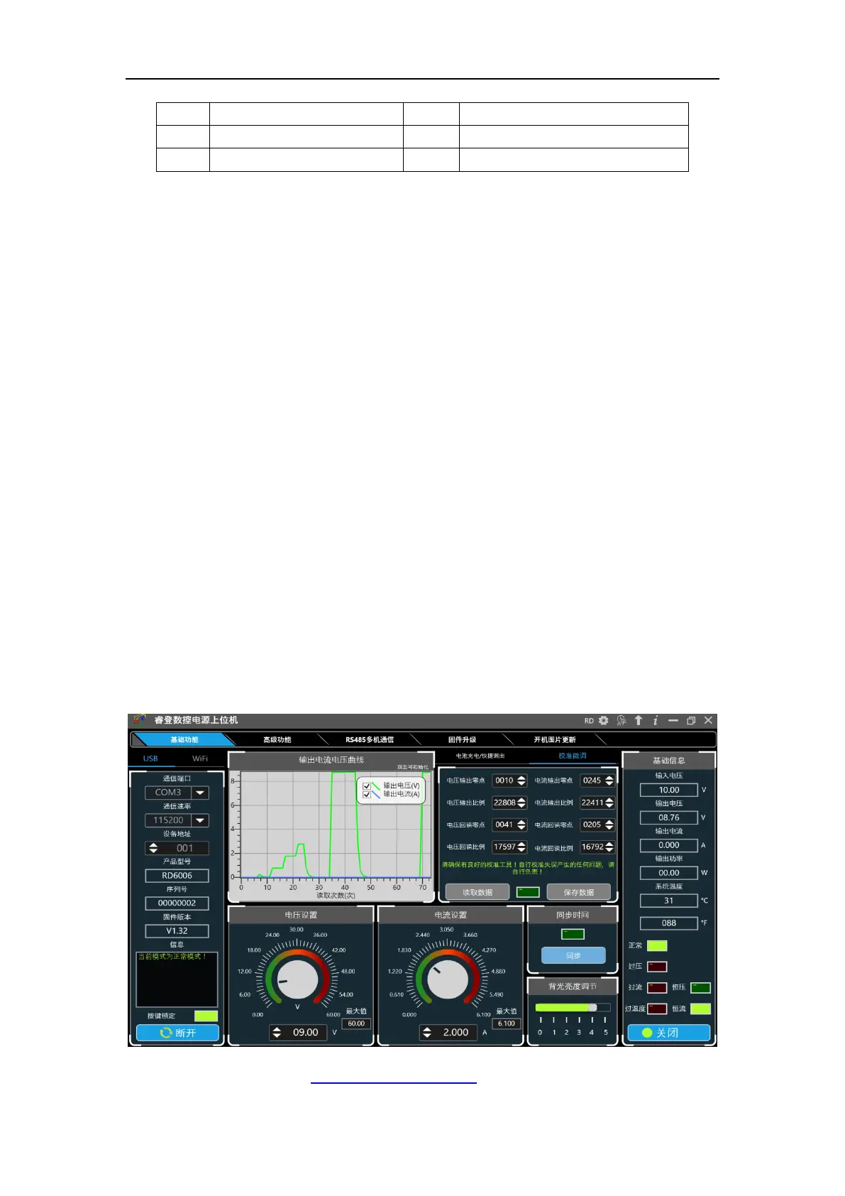 上位机的基础功能包括:电压电流的设置、快捷输出、校准微调、亮度调节