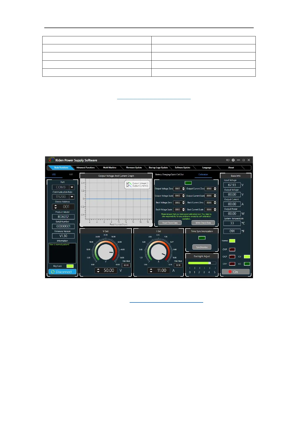 out, calibration fine tuning, brightness setting, voltage and current curve exporting.