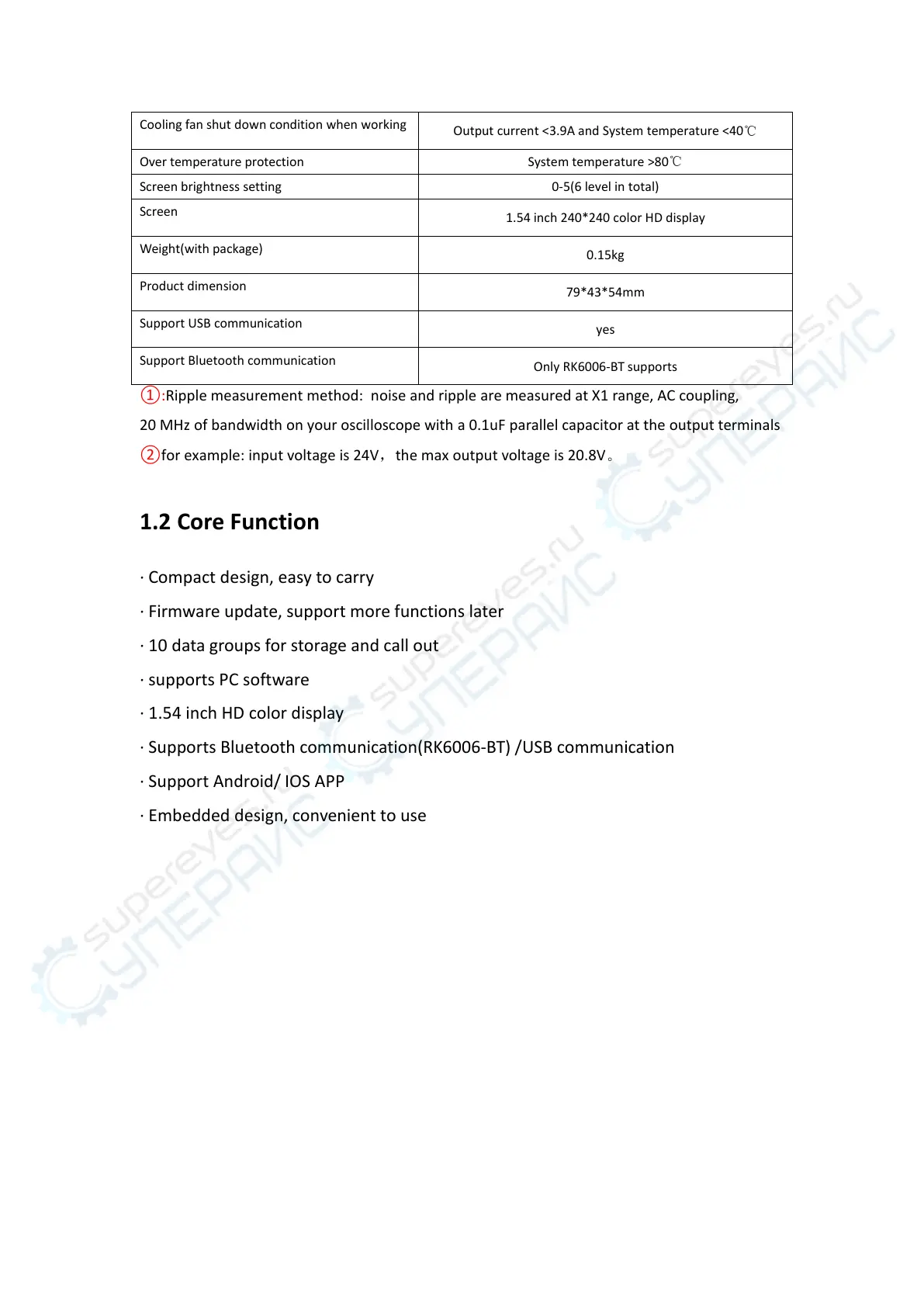 ①:Ripple measurement method: noise and ripple are measured at X1 range, AC coupling,