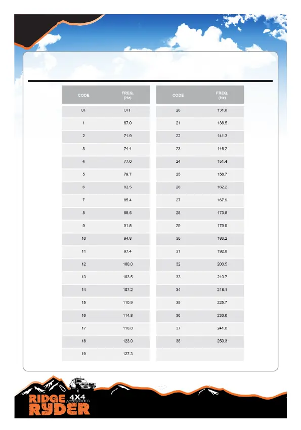 RIDGE RYDER RR50A - CTCSS Tone Information; CTCSS Tone Code Table