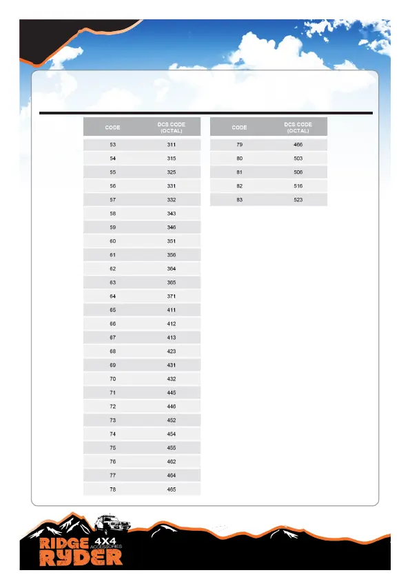 RIDGE RYDER RR50A - Continued DCS Code Information; DCS Code Table Continued