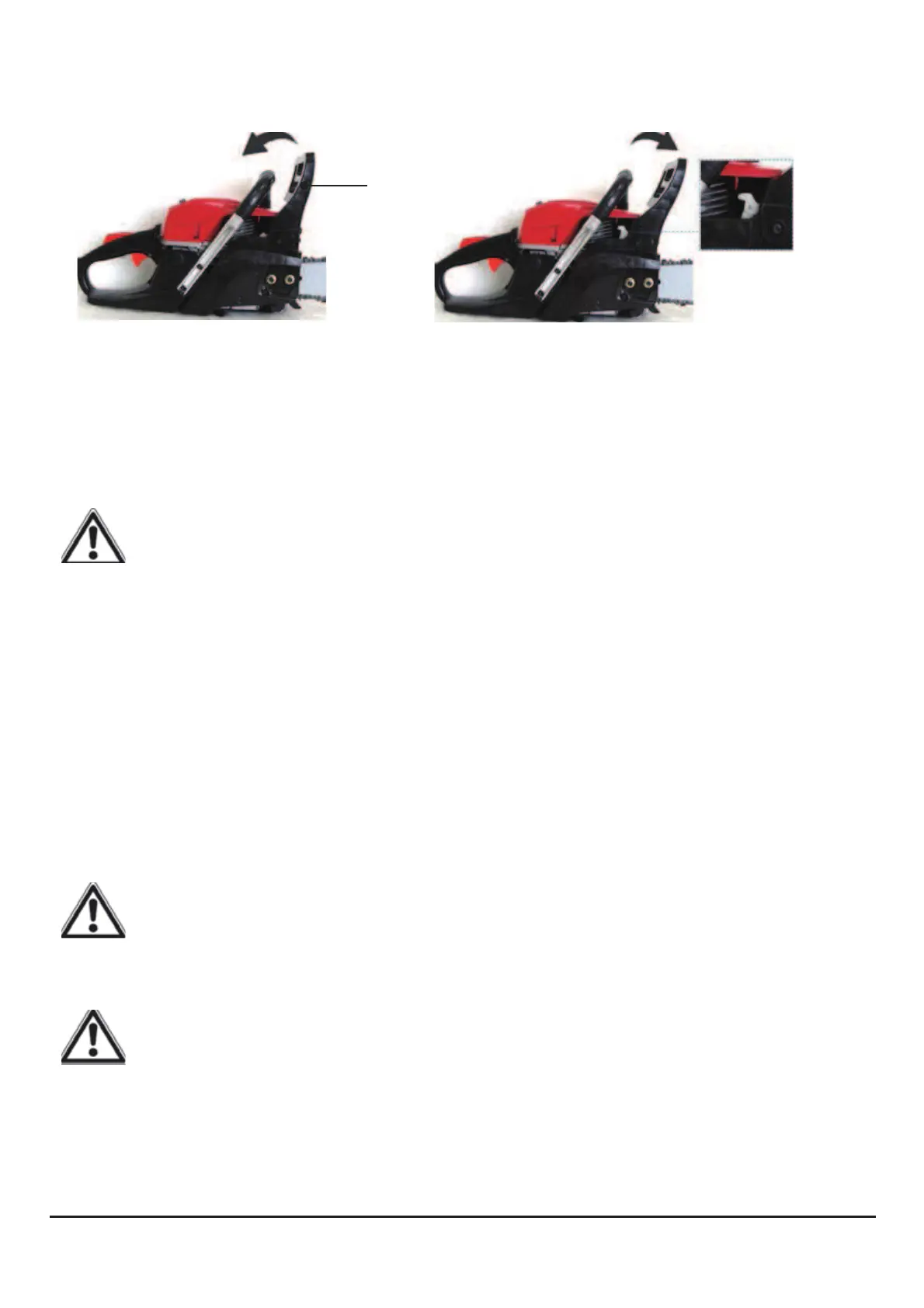 WARNING! If the saw chain and engine fail to stop when the chain