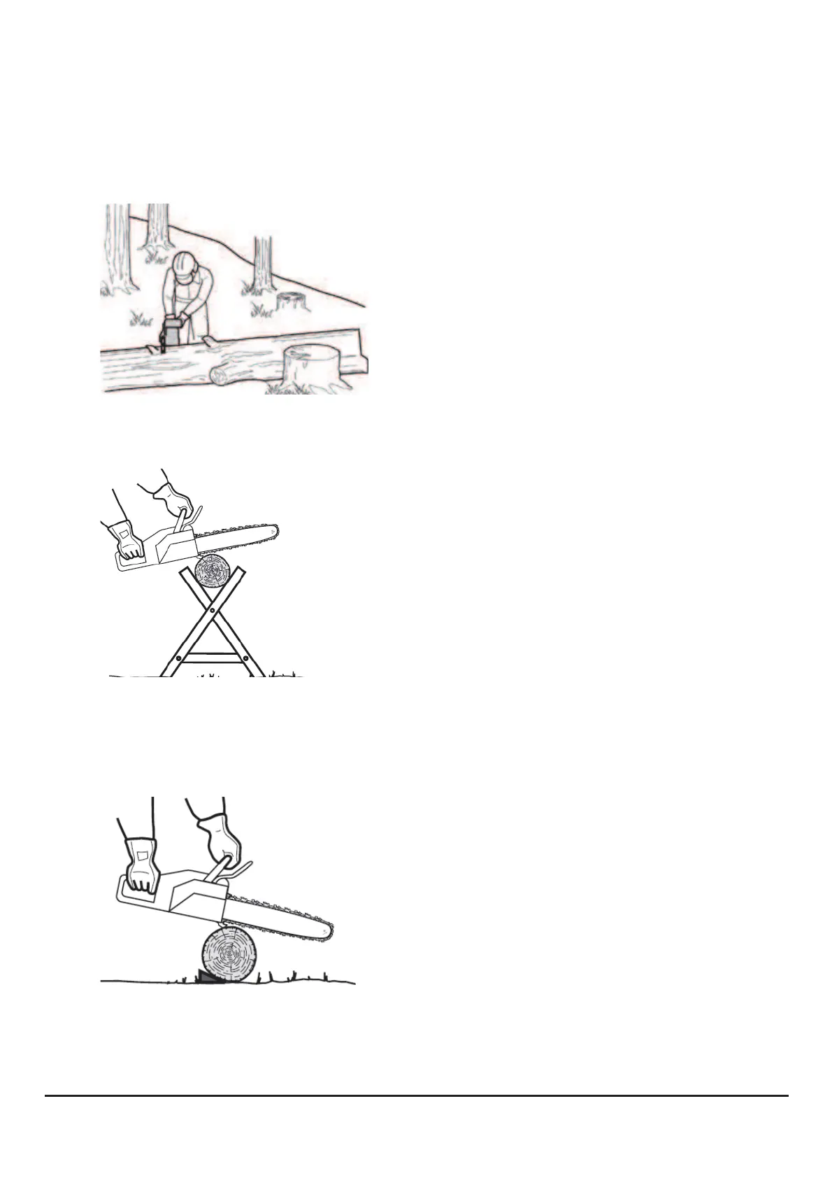 handles. Do not let the chain contact the ground. After completing the cut,