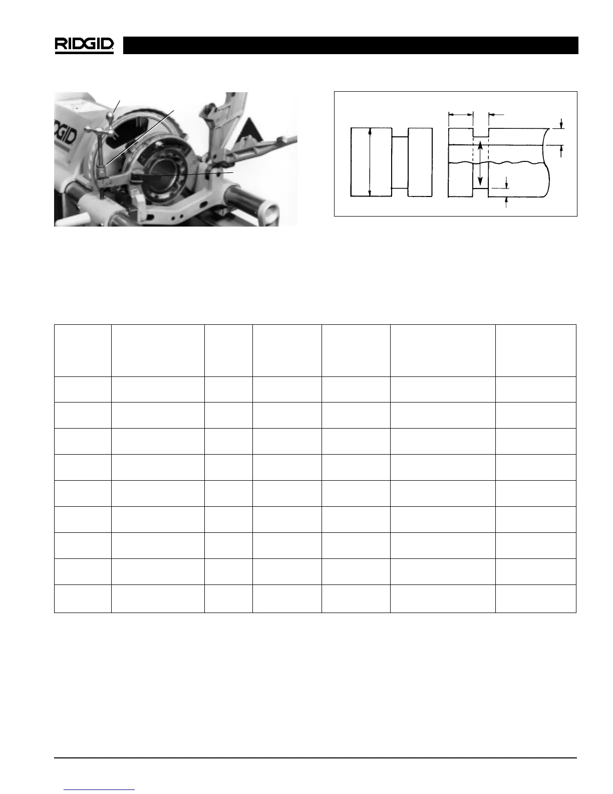 Colonne 6 – Diamètre extérieur de la rainure : la rainure doit avoir une profondeur uniforme sur la circonférence du tuyau. Le diamètre “C” doit être assuré.