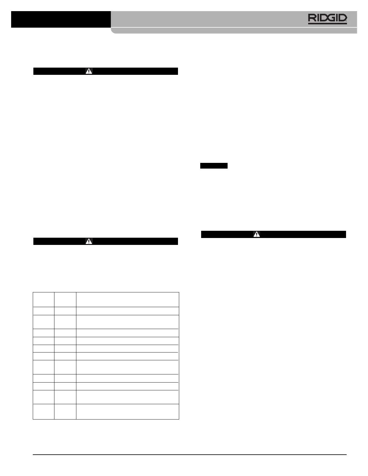 • Contact RIDGID Technical Services Department at