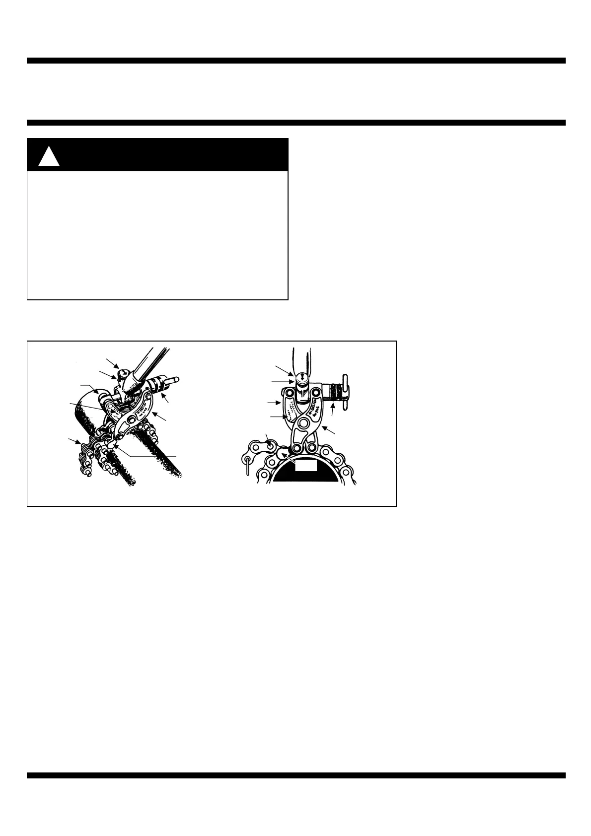 5.Draai de ratelknop zodat de pijl naar de rode hendel wijst (zie figuur 1). De ketting moet correct zijn ingesteld om