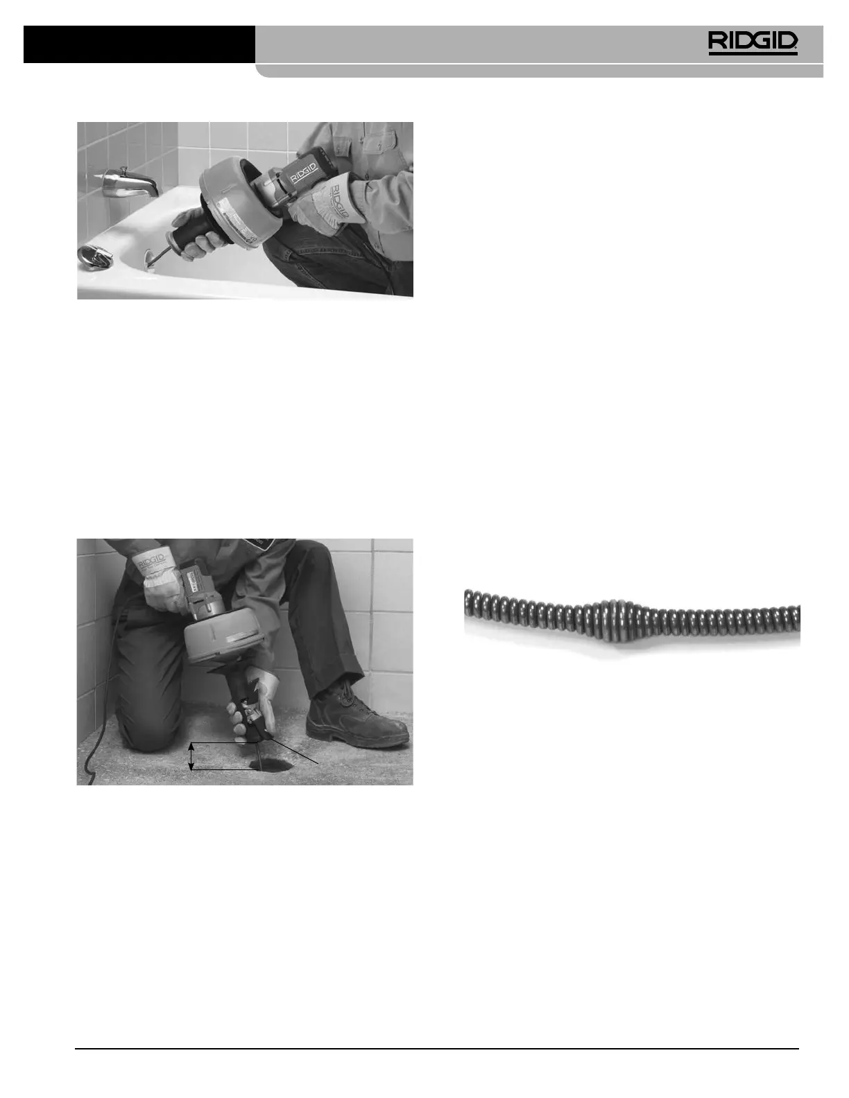 roterande spiralen arbetar sig in i avloppet. Låt inte kabeln