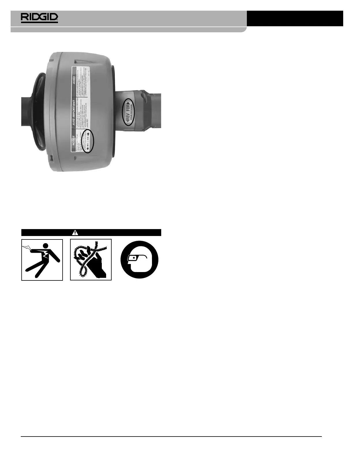 Käytä aina turvalaseja, RIDGIDin viemärinpuh-