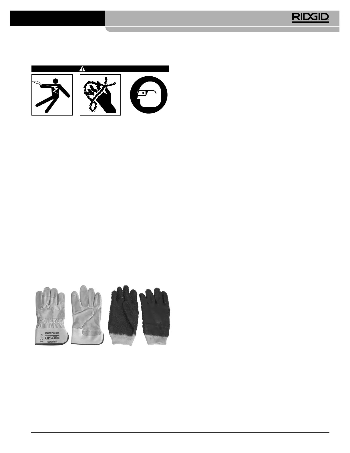 né brýle, rukavice na čištění odpadů firmy RIDGID