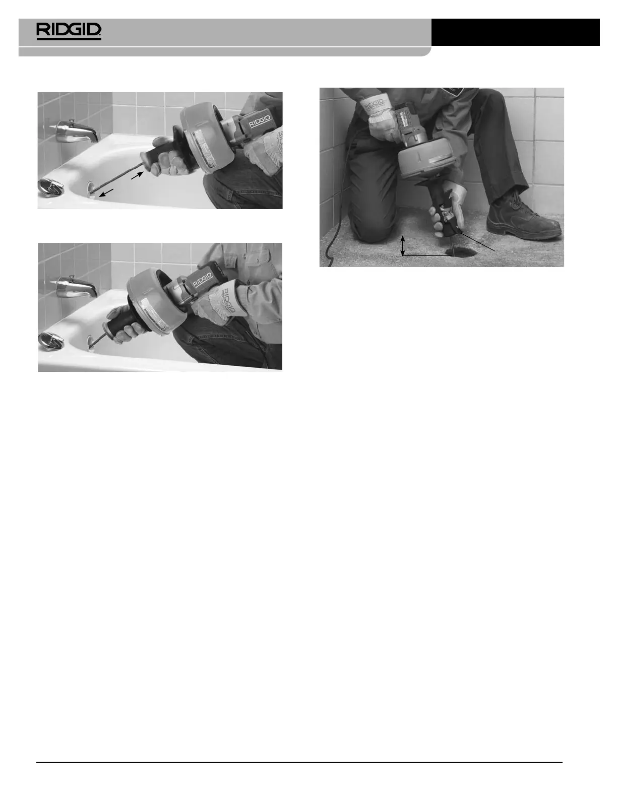 afvoerontstopper zich op niet meer dan 6" (15 cm) van de