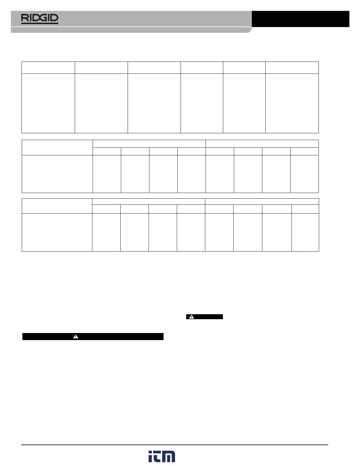 NOTE! See Ridge Tool catalog for complete list of pipe
