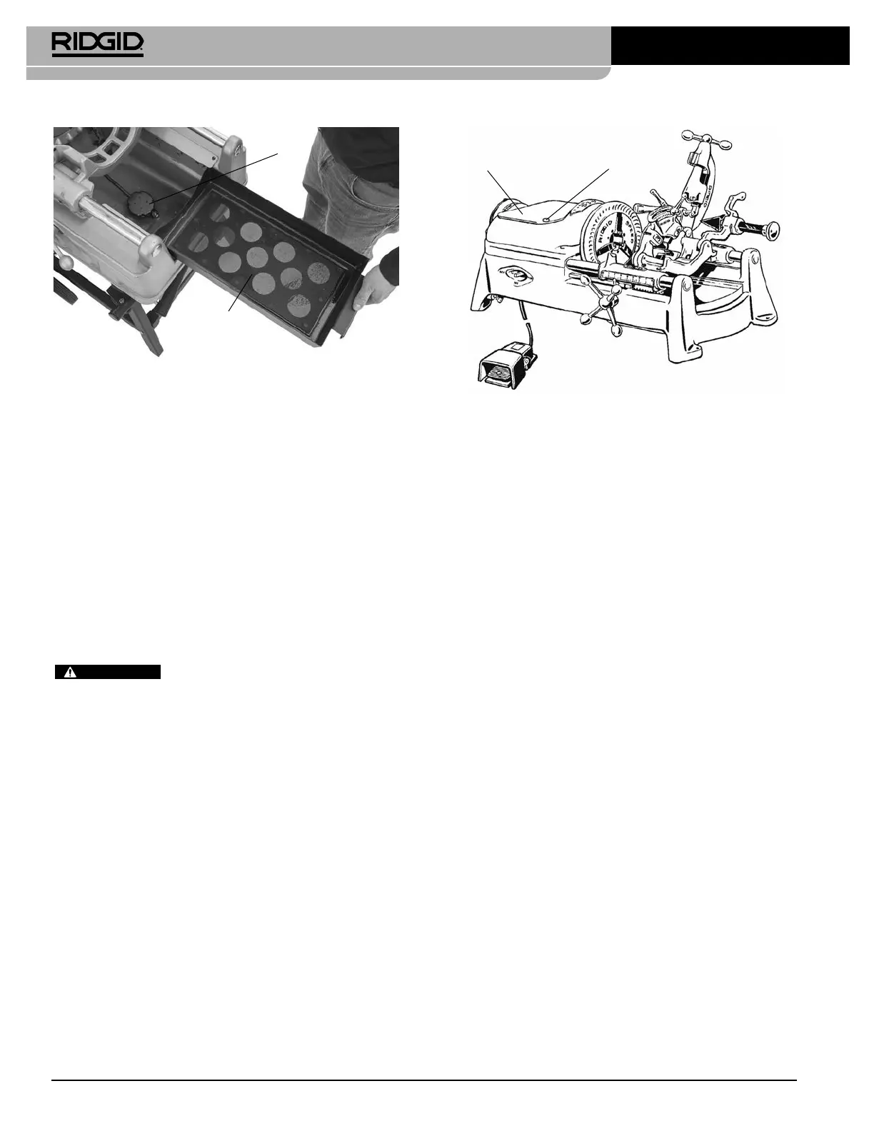 zo spodnej časti nádrže. Použite závitorezný olej RIDGID, aby
