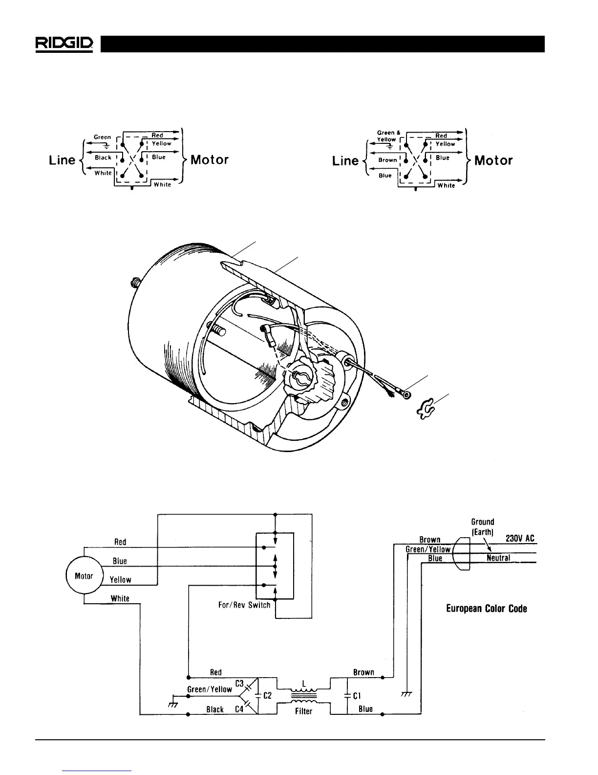 RIDGID 700 - Wiring Diagrams and Schematics; Wiring Color Codes; 230 V Wiring Schematic