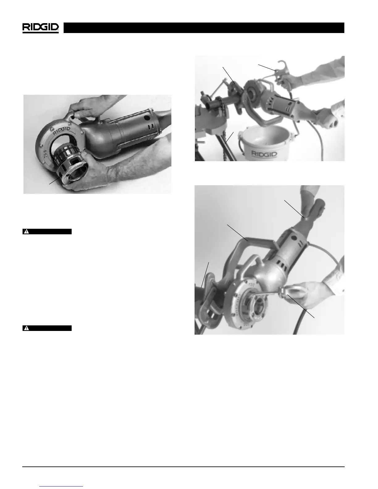 para Roscar RIDGID. Coloque la aceitera delante de