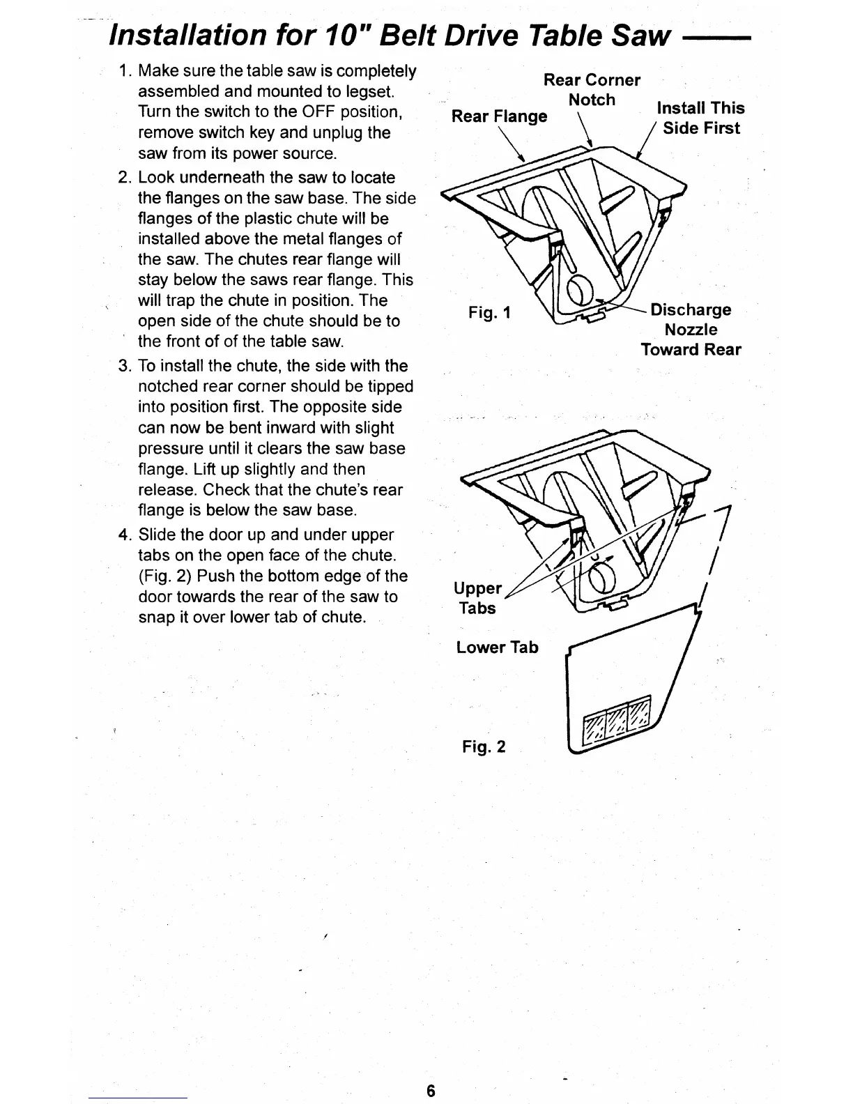 the saw. The chutes rear flange will
