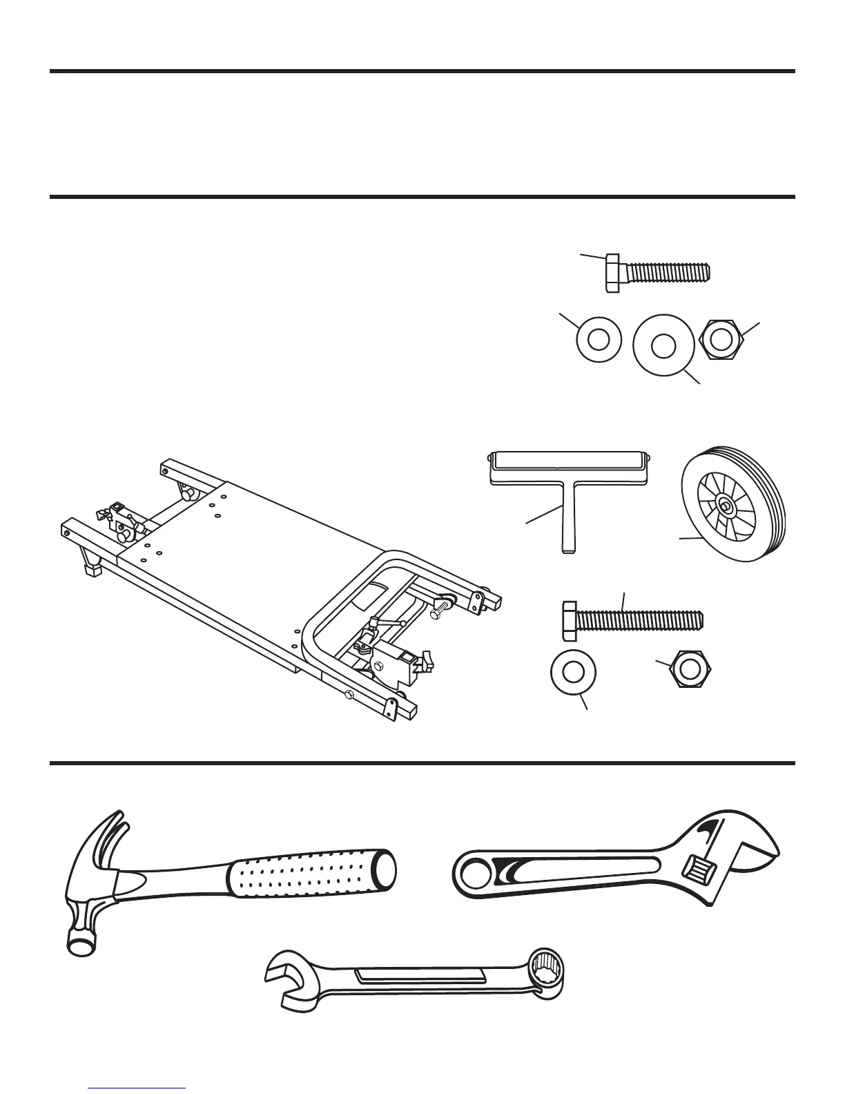 The following tools (not included) are needed for properly assembling your Miter Saw Utility Vehicle.